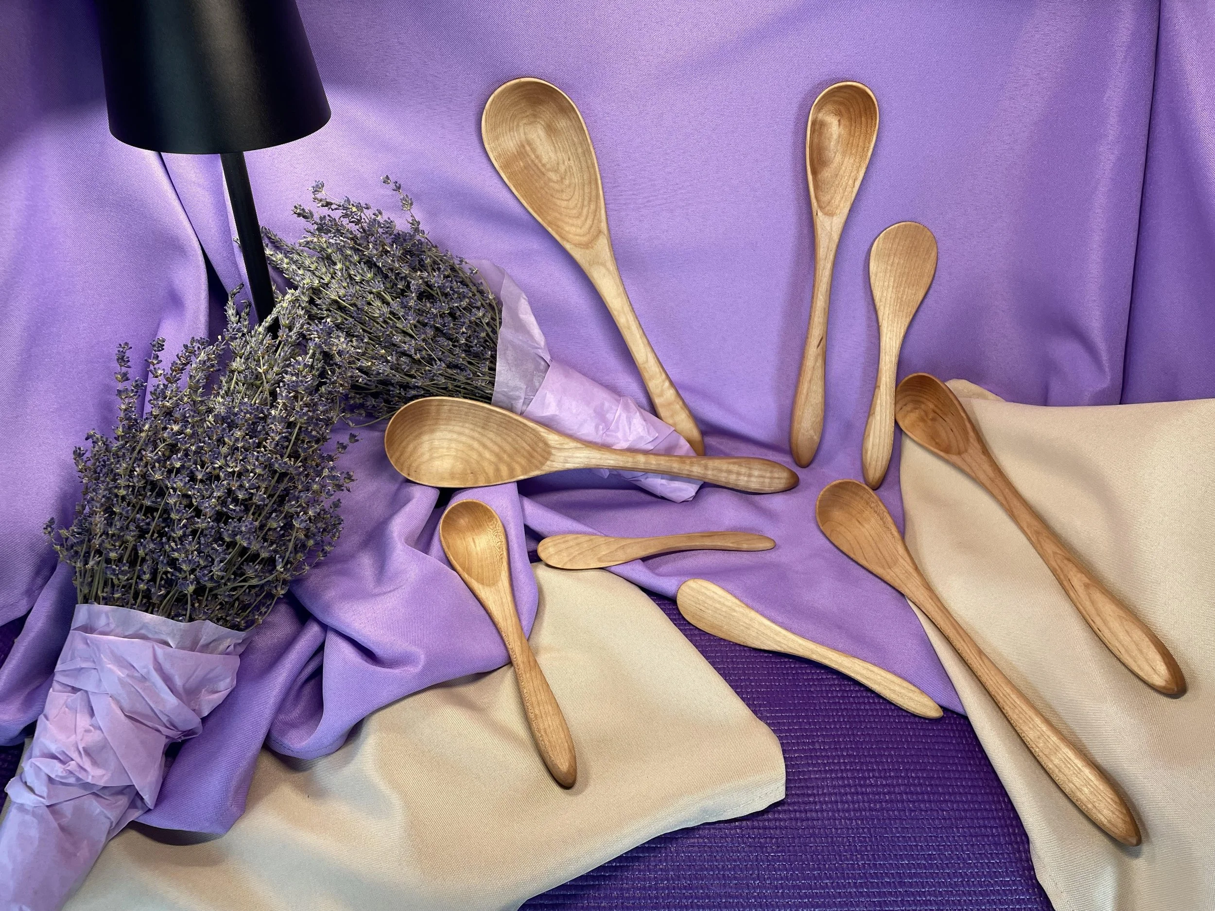 Along with our lavender, we handcraft a collection of hardwood maple spoons. Each one is designed to be as functional in your kitchen as they are beautiful. Our focus on farm-grown botanicals and thoughtful, handmade goods means every product reflects the care and craft from our fields and workshop.