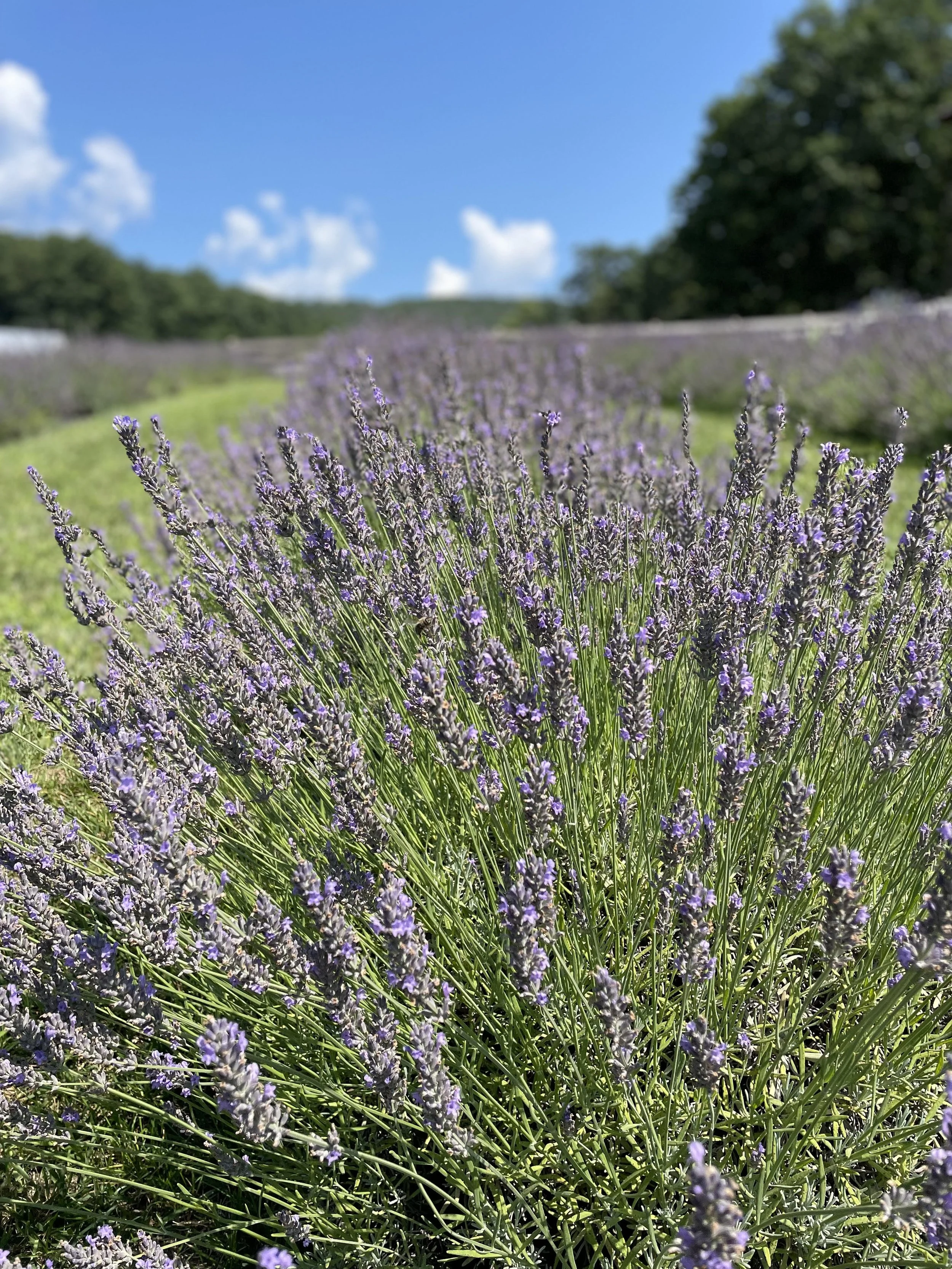 My husband and I are lucky to live on part of the farm that he grew up on — back then it was a dairy farm — and after years of wondering what to do with our beautiful property we discovered lavender. A key to its success here is that deer don't eat it, so we set out to grow over ten different cultivars because we didn't know which plants would thrive on our hill.